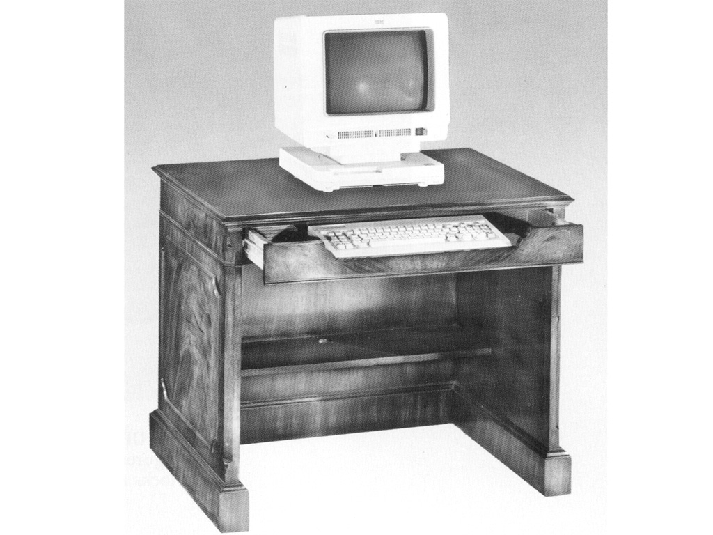 Computer desk with slide out keyboard sleeve. In mahogany.